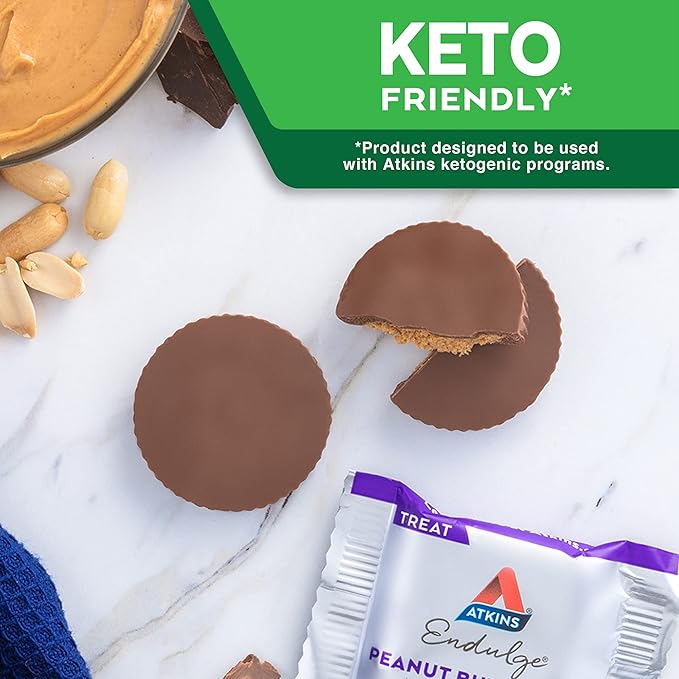 - SATISFY YOUR SWEET TOOTH. Atkins Endulge Peanut Butter Cups. 1g of net carbs and 0g of sugar per serving*. This is Today’s Atkins.