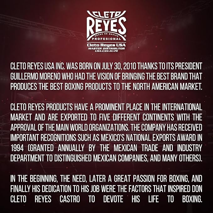 - LONG-LASTING MATERIALS - Ensure that your CLETO REYES boxing punching bag will provide the best punching absorbency and long-lasting durability. CLETO REYES products have a prominent place in the international market and are exported to different continents.