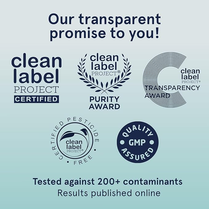 - FULL TRANSPARENCY: Every batch of every product tested for purity and potency by Clean Label Project. They use independent laboratories and publish the test results for everyone to see.