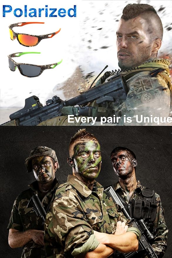 - Precision-Crafted TR90 Camouflage Frame Sunglasses - Lightweight and Durable, Suited for Driving, Hunting, Fishing, Boating, Beach, and Outdoor Activities.