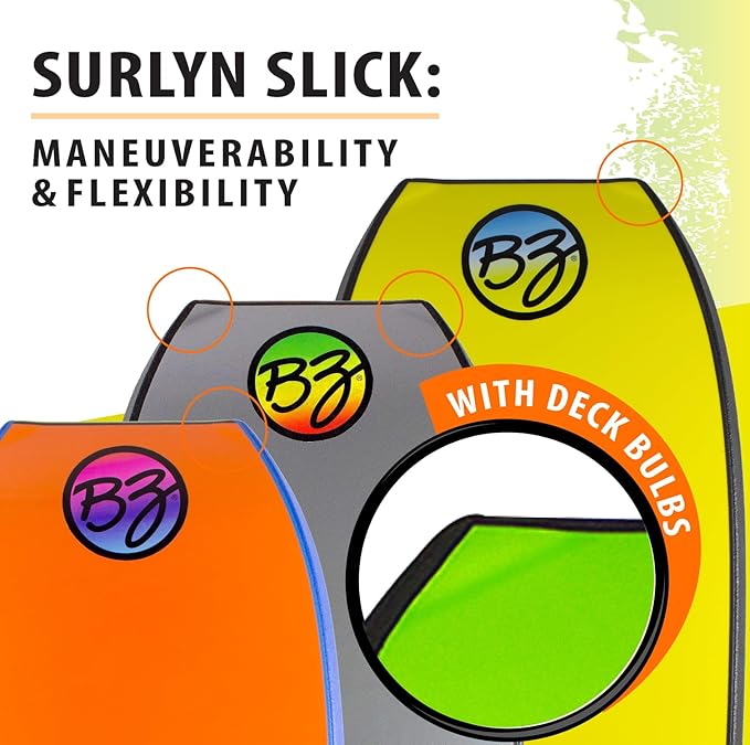 - SURLYN SLICK: Employing Surlyn plastic material for the slick surface, a choice found on nearly all high-quality bodyboards today. Surlyn provides maximum flexibility without compromising the stiffness inherent in the Zero-G PP core.