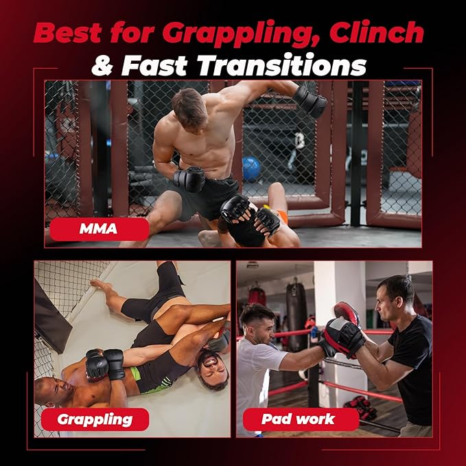 - Superior Grappling Flexibility: Dominate every clinch and takedown with our open-palm and half-finger design, engineered for maximum flexibility and secure grip. Perfect for flow work, these gloves let you transition seamlessly between grapples, holds, and submissions—keeping your movements fluid, responsive