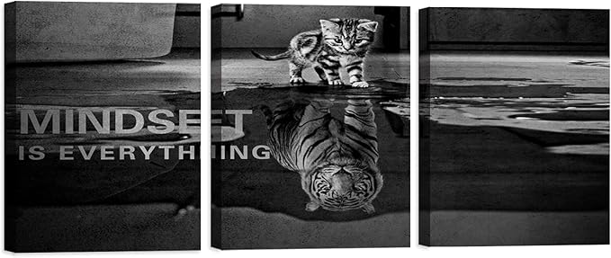 Yetaryy Inspirational Canvas Wall Art Large 3 Pieces Motivational Wall Art Picture Mindset is Everything Wooden Framed Artwork Entrepreneur Quotes Inspiration Wall Decor Painting Picture Wall Ar Hang,