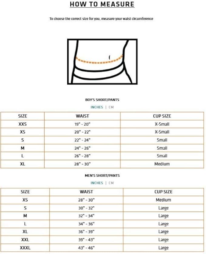 - SIZING NOTE: Designed to fit close-fitting for optimal support. If measurets are close to the maximum size range, it is recomded to select the next size-up for comfort. Suitable for boys compression shorts, and football cups for youth boys.
