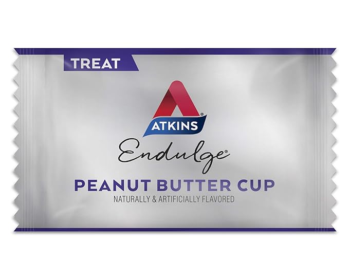 - SATISFY YOUR SWEET TOOTH. Atkins Endulge Peanut Butter Cups. 1g of net carbs and 0g of sugar per serving*. This is Today’s Atkins.