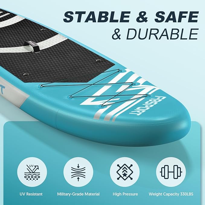 - PREEMINM MATERIAL - Inflatable Paddle Boards is Made Of The Highest Quality Military Grade Material.Max load is up to 350 lbs Providing The Most Durable Lightweight Board On The Market. Brushed Thickening blow up paddle board with Non-slip soft deck,ideal for all skill levels for less accidents or injuries should you fall!