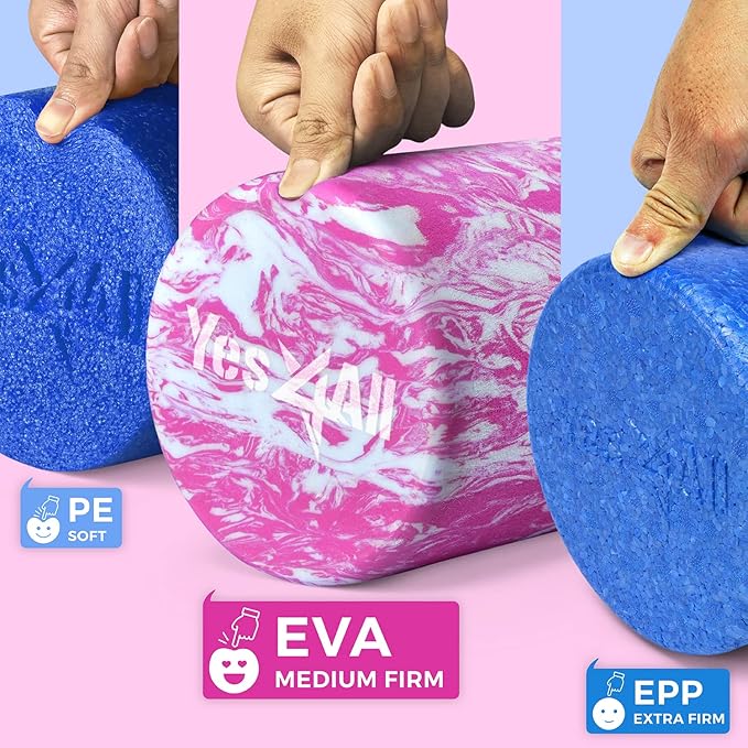 - CLOSED CELL EVA: Yes4All EVA Foam Rollers for massage has a closed-cell foam design that provides durability, making it easy to clean and reuse in a long time