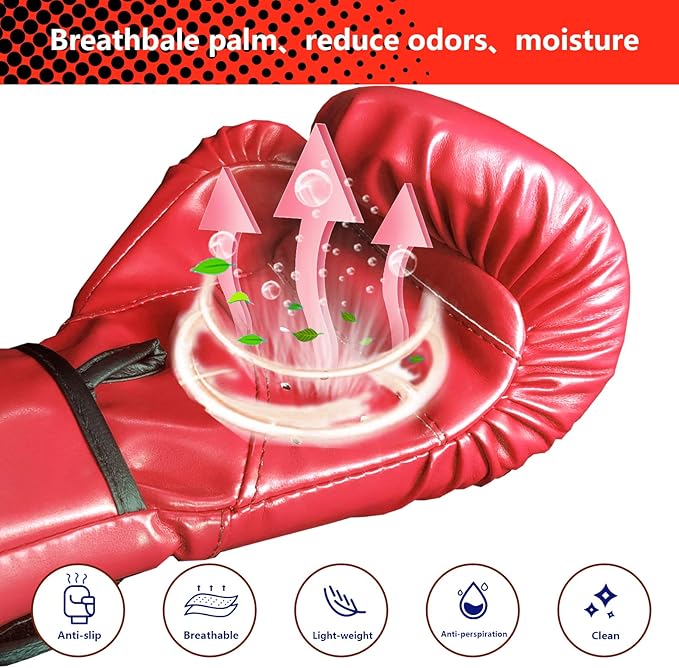 - High-quality materials: Featured PU leather and integral molding EVA foaming, anti-seismic and soft, easy to clean.Durable,suitable for children aged 6-15 years,Can be used as Kids Boxing Training Gloves or Boxing Fight Gloves ,suitable for MMA, Muay Thai, Kickboxing, Punchbag sports.