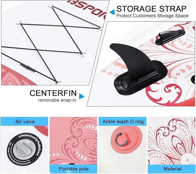 - VERSATILE PORTABLE STAND UP PADDLE BOARD - Quickly inflates or deflates for easy storage - packing down to the carrying bag.FBSPORT pandle board can be used in different water including sea,lakes, rivers or small wavy ocean. And the inflatable sup boards is great for fishing, surfing, paddling, cruising, yoga, sightseeing in water.