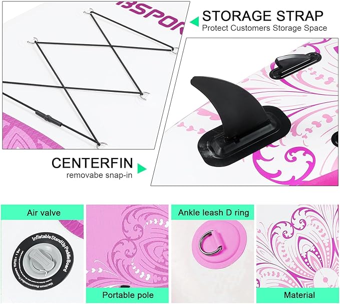 - VERSATILE PORTABLE STAND UP PADDLE BOARD - Quickly inflates or deflates for easy storage - packing down to the carrying bag.FBSPORT pandle board can be used in different water including sea,lakes, rivers or small wavy ocean. And the inflatable sup boards is great for fishing, surfing, paddling, cruising, yoga, sightseeing in water.