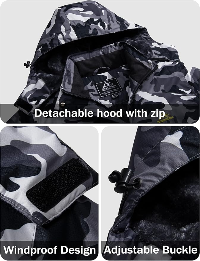 • Water repellent: Professional water repellent jacket, keep your body always dry and comfortable, you won't worry about getting wet while skiing, snowboarding, hunting, hiking in inclement weather.