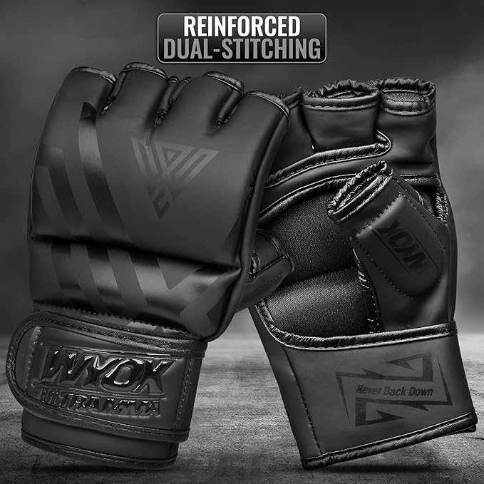 WYOX MMA Gloves for Men & Women β Grappling & Sparring Boxing Gloves with Open Palm Design, Padded Fingerless Training Gloves for Kickboxing, Muay Thai, Youth & Heavy Bag Workouts