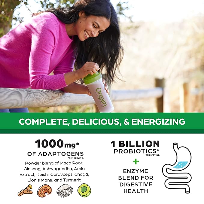 - ALL-IN-ONE NUTRITION: A nutrient-dense meal replacement powder with whole foods. Each serving delivers 25g organic plant-based protein, 10g fiber to keep you fuller, 5g of good fats from avocado and coconut oil, 1 billion probiotics, and adaptogens.