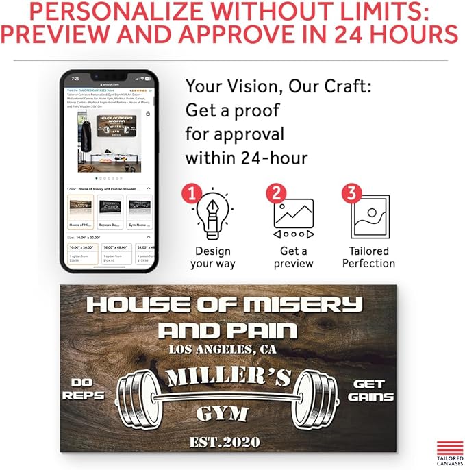 - You get a Preview with a Lifetime Warranty - Check your Personalized Gym Sign Wall Art Decor sent by our Quality Control Team within a day via Amazon Messaging; Love it or We'll make it right for you, no questions asked! Click "Customized Now" & Lets turn your Ideas into Reality!