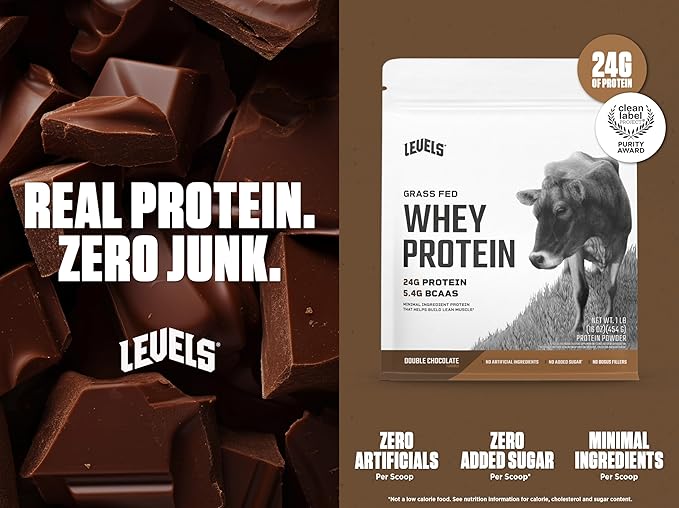 - LEVELS WHEY PROTEIN: Each scoop of Levels Double Chocolate Whey contains 24g Protein, 5.4g BCAAs (branched-chain amino acids), and no added sugars. Trusted by athletes, fitness enthusiasts and daily grinders everywhere, our whey is crafted for everyone’s lifestyle.