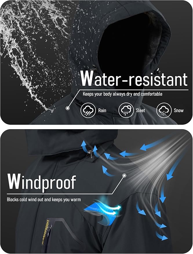 • Water repellent: Professional water repellent jacket, keep your body always dry and comfortable, you won't worry about getting wet while skiing, snowboarding, hunting, hiking in inclement weather.