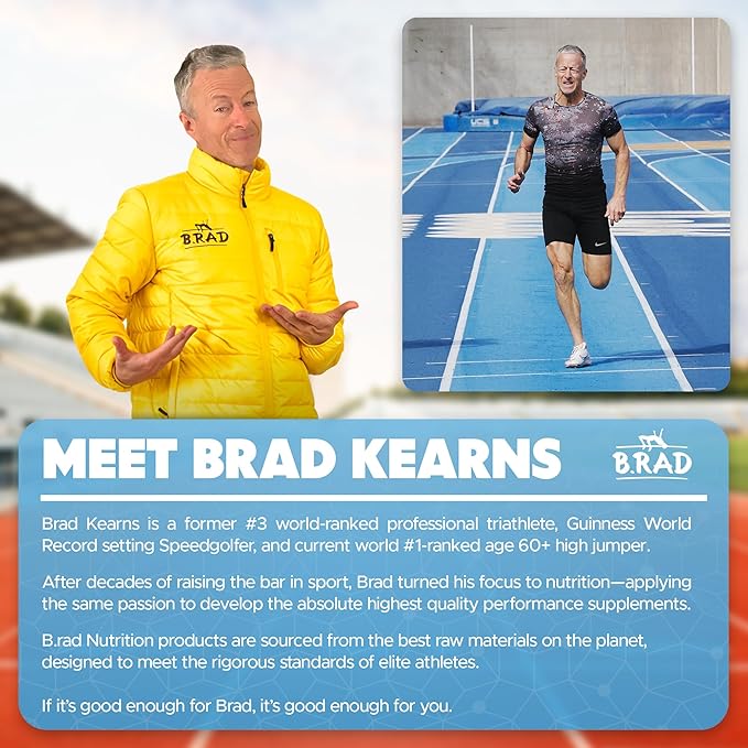 - About B.rad: B.rad Nutrition was founded by Brad Kearns, world #1 Masters age 60+ high jumper, former national champion and #3 world-ranked pro triathlete, author of 20 books on diet, fitness and peak performance and host the top-10 ranked B.rad podcast.