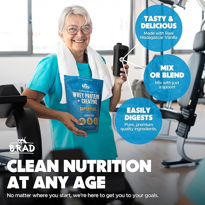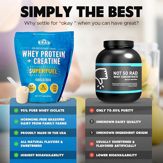 B.rad Superfuel - Grass Fed Whey Protein Isolate Boosted with Creatine | Ultra-Pure, All-Natural Clean Ingredients | 2 Pounds | 100% USA Sourced | Vanilla Bean