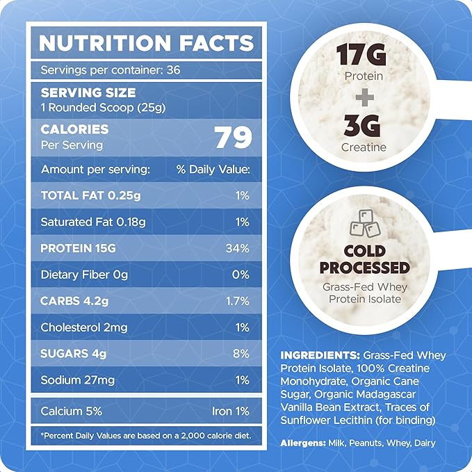 - PERFORMANCE & RECOVERY with SUPERFUEL: A powerful blend of whey protein isolate powder and creatine provides your muscles with everything they need to perform, repair, and recover. It helps protect brain neurons, boosts immune and digestive function while stabilizing appetite and satiety to promote fat loss.