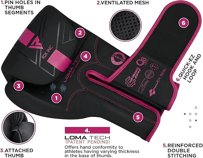 - PATENT PENDING LOMA TECH DESIGN – Do you face trouble forming the perfect fist, while using boxing gloves ? RDX gloves feature a PATENT PENDING single seamless LOMA Tech design used in the palm area and thumb of the boxing gloves. This helps create an improved alignment between the fist and thumb and along with an especially designed attached thumb allows the trainees to form the perfect fist and punch better with the training gloves.