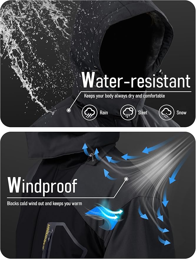• Water repellent: Professional water repellent jacket, keep your body always dry and comfortable, you won't worry about getting wet while skiing, snowboarding, hunting, hiking in inclement weather.