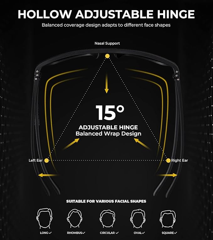 - High Quality Material: Premium Rectangular frame, anti-scratch polarizing lens, adjustable metal spring hinges and integrated nose pad make KALIYADI sunglasses men polarized uv protection more lightweight and durable. All these details of sunglasses polarized ensure the customer have a comfortable wearing experience