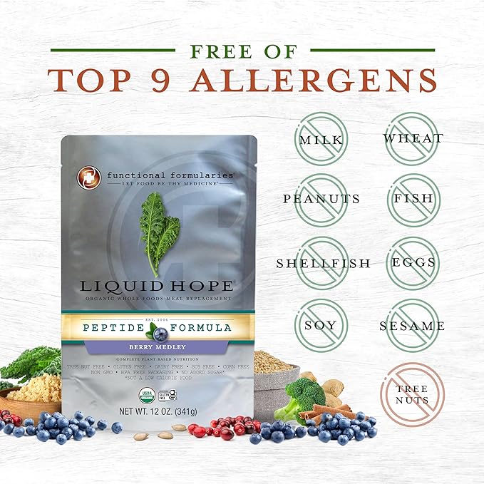 Functional Formularies Liquid Hope Peptide Berry Medley, Organic Tube Feeding Formula And Nutritional Meal Replacement Supplement, 12 Fl. Oz. Pouch, Pack of 24, Total: 288.0 Fl Oz