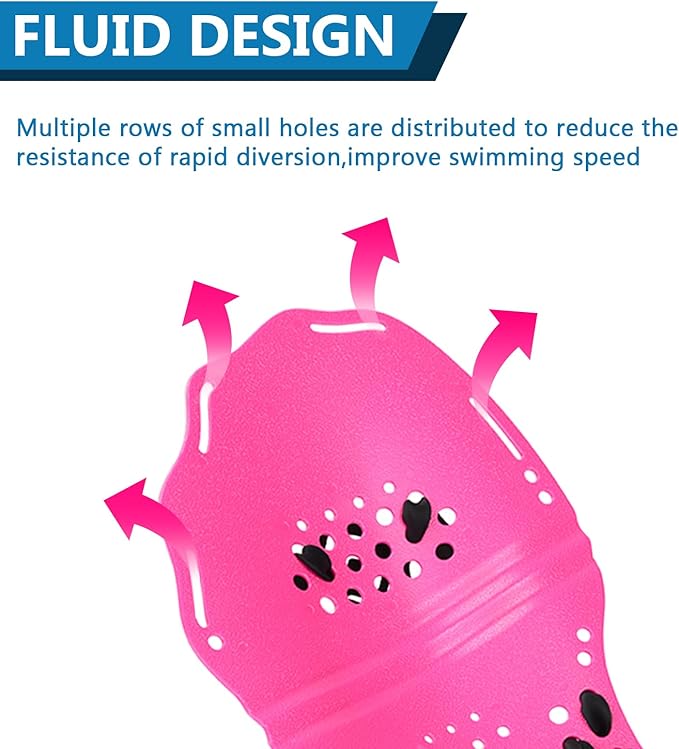- [EXTREMELY COMFORTABLE] The hand paddles are made of high quality PC material, light weight, not easy to bend, with many drainage holes and waterways, the smooth design can push more water and create a smooth pulling trajectory, reduce shoulder burden and fatigue, let you have a better feeling of the water.