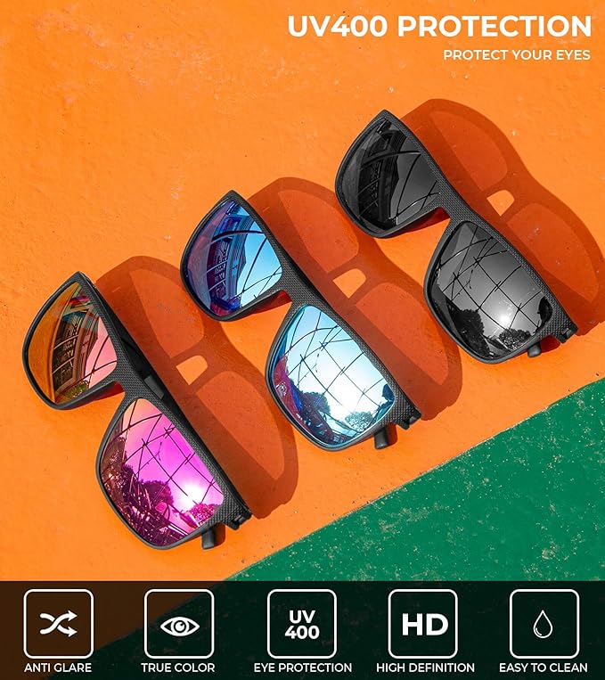 • šŸ˜Ž Gift Ideas Package and Brand Customer Service ā–¶ Classic sunglasses*3, microfiber pouch*3, microfiber glasses cleaning cloth*3, gift box*1. KALIYADI sunglasses men are also gift packed, which will be great gifts for your family and friends! All KALIYADI customers enjoy brand customer service for our polarized sunglasses men. The integrity of every box and the quality of the lenses are double checked by third-party companies. And that goes with a lifetime support!