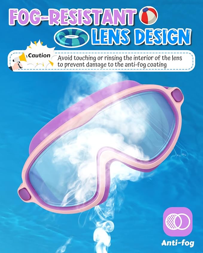 - 【UV PROTECTION】 Our pool goggles are equipped with lenses treated with a high-energy ultraviolet absorber, providing maximum protection against the damaging effects of UV sun rays. Designed with the well-being of children in mind, these goggles ensure the delicate eyes of kids are shielded from harmful UV rays, allowing them to explore the underwater world with confidence during swimming lessons and fostering a lifelong love for swimming.