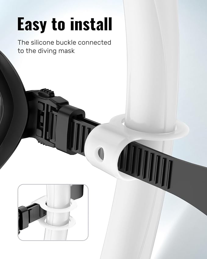 • 【Silicone Snorkel Keeper】The holder is different from others. WSTOO's holder is made of soft silicone material and is made of two connected circles. When connecting the breathing tube to the dive mask, only one side needs to be removed. Very easy to operate.
