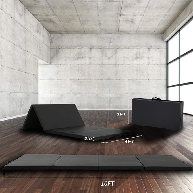 Gymnastics Tumbling Mats Portable Gymnastics Mat Foldable Tumbling Mat 2'x6'/4'x8' PU Leather Exercise Mat Yoga Mat with Carrying Handles for home Workout outdoor Yoga Gymnastics