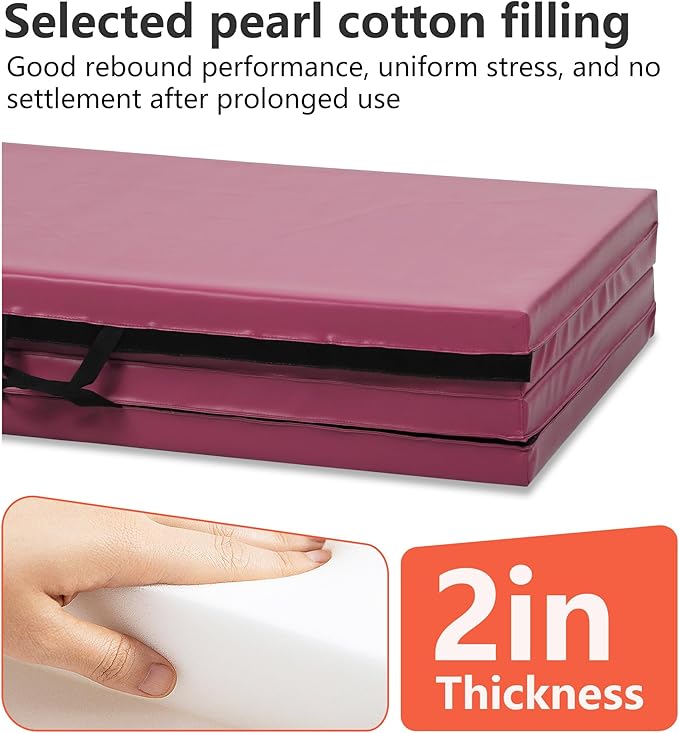 Gymnastics Tumbling Mats Portable Gymnastics Mat Foldable Tumbling Mat 2'x6'/4'x8' PU Leather Exercise Mat Yoga Mat with Carrying Handles for home Workout outdoor Yoga Gymnastics