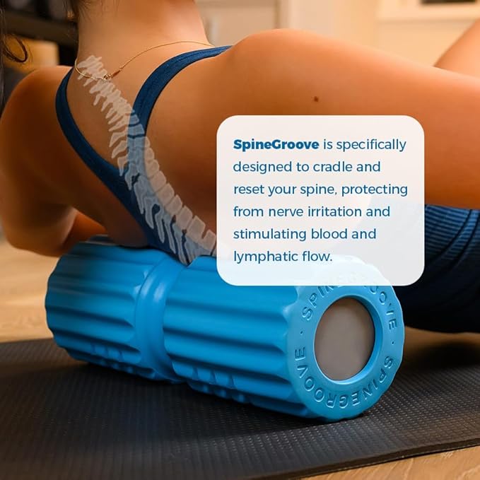 - The patented SpineGroove foam roller is specifically designed to cradle and reset your spine, rib-cage, neck, arms, forearms, palms, upper thighs, calves, shins, and feet while experiencing a deep myofascial and trigger point release. Its textured surface and specially designed profile and massage zones create drag on the tissue allowing fascial adhesions and layers to melt and reset.