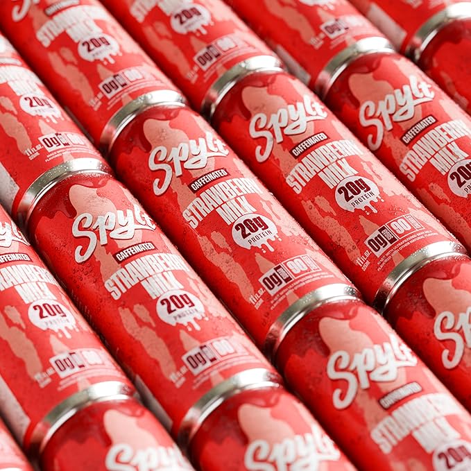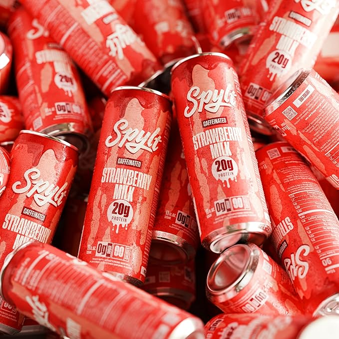 - CAFFEINATED PROTEIN BOOST: Strawberry milk with a giant caffeinated kick in the pants. With 60mg of liquid caffeine, and 20g of protein milk, SPYLT is your caffeinated compadre and AFTERNOON PICK ME UP!