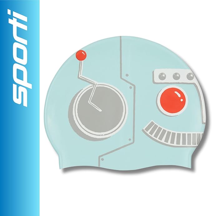 - EMBRACE THE FUTURE WITH THE SPORTI ROBOT SILICONE SWIM CAP JR - A cool cap choice for tech-savvy swimmers!