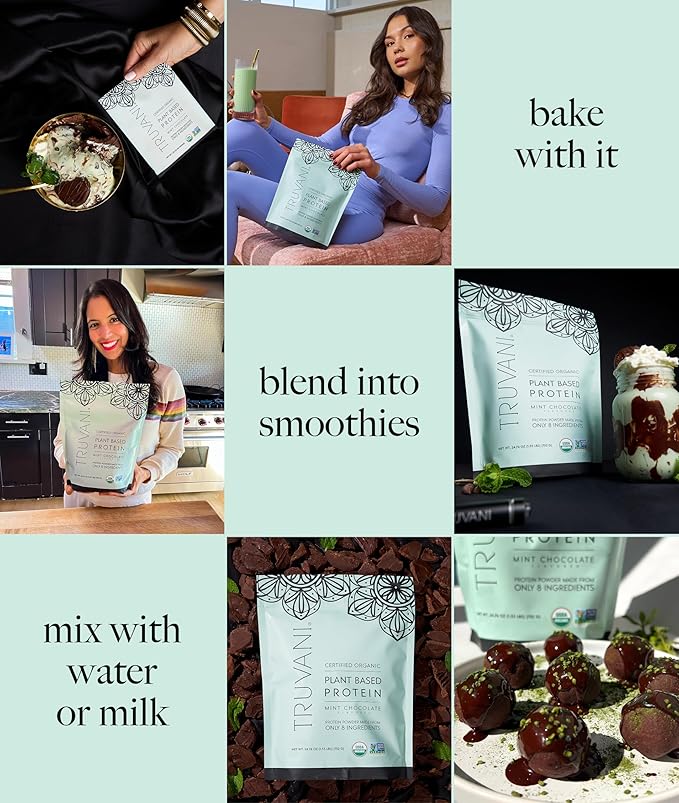 Truvani Vegan Pea Protein Powder | Mint Chocolate | 20g Organic Plant Based Protein | 20 Servings | Keto | Gluten & Dairy Free | Low Carb | No Added Sugar