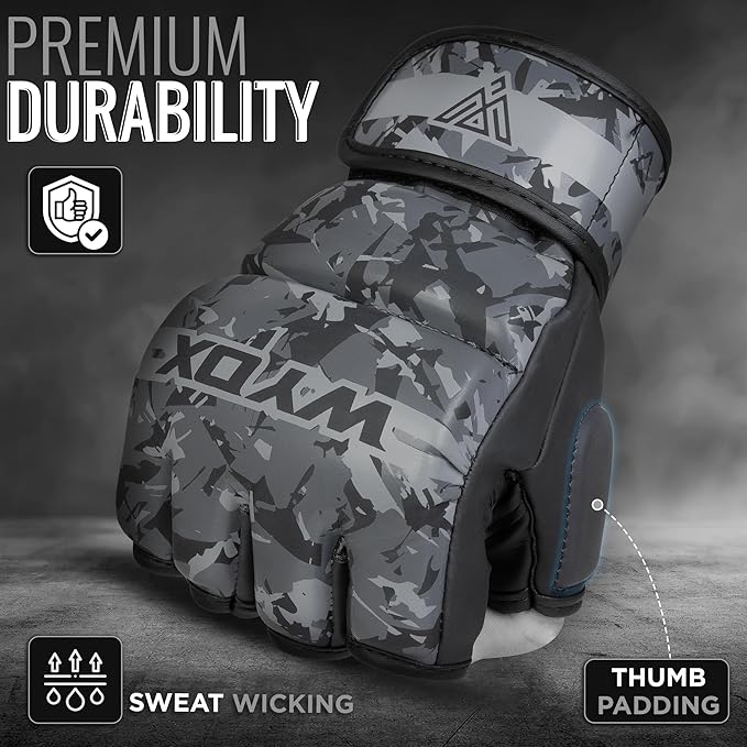 WYOX MMA Gloves for Men & Women β Grappling & Sparring Boxing Gloves with Open Palm Design, Padded Fingerless Training Gloves for Kickboxing, Muay Thai, Youth & Heavy Bag Workouts