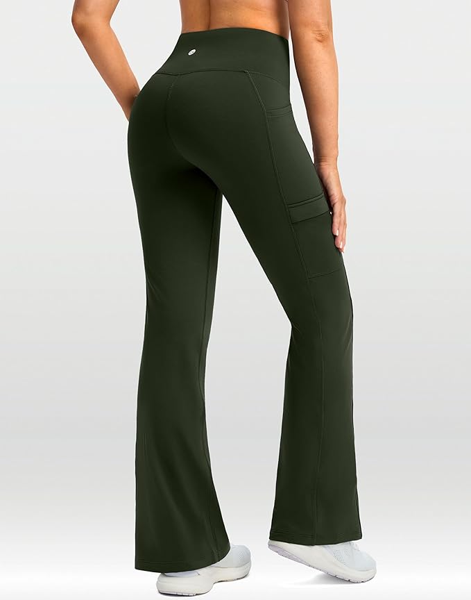 - SLIGHTLY FLARE & CROSS-WAIST: 29"/31" Inseam fleece leggings with V crossover waist making it more stylish, flattering. Slightly flared pants shape visually slims the silhouette and fits any body type