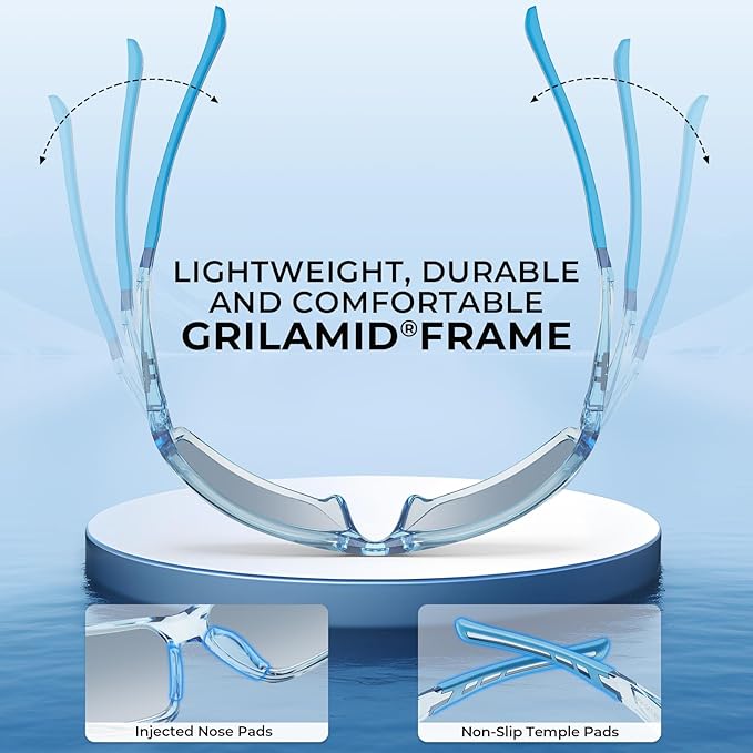 - KEY FEATURES – Impact-resistant polarized 1.0mm TAC lenses reduce glare, Block 100% of harmful UVA and UVB rays, Oleophobic and saltwater resistant lens coatings protect mirror finish, Full wrap frame design, Lightweight, durable, and comfortable Grilamid frames, Non-slip temple pads.
