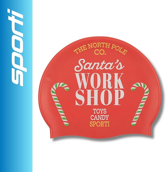 - The Sporti North Pole Silicone Swim Cap Jr. is a cute red holiday cap that adds festive cheer to your swim sessions.