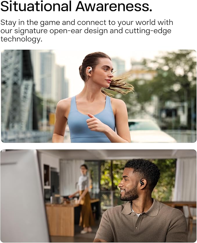 - Open-Ear Awareness - Stay connected to your surroundings with Shokz open-ear design, and to your phone calls with dual noise cancelling mics. Keep your sound private with custom DirectPitch 2.0 technology