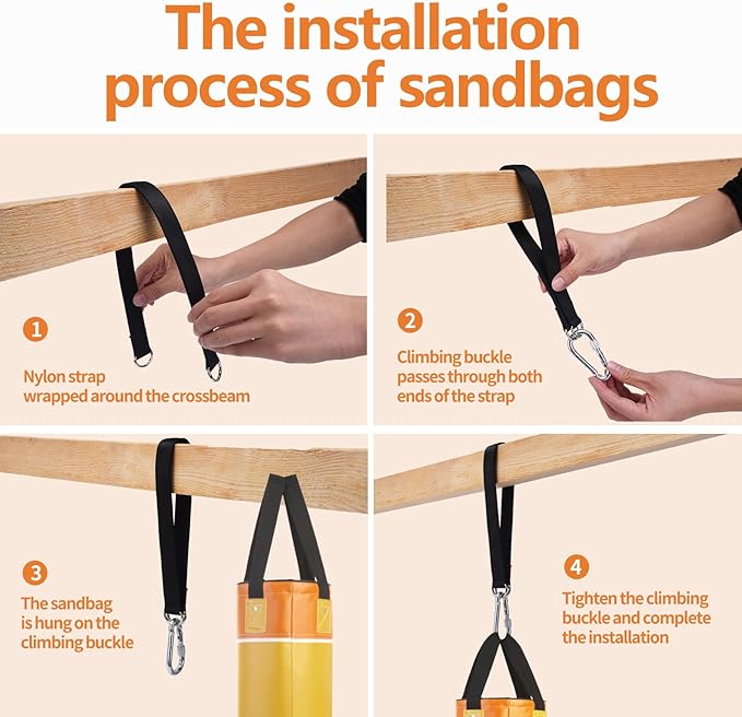 - The Punching Bag Hanger is quick and easy to install - simply place the strap around the beam and secure it with a hiking buckle - and it's ready to go. This easy setup saves you valuable time and allows you to get back to training faster.