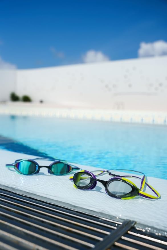 - Mirrored lens cuts down on glare from the sun while swimming outdoors and in well-lit pools; Also available in a non-mirrored lens for all your competition needs