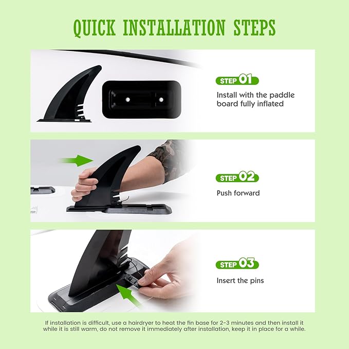 - 【Fin Upgrade】Our paddle boards are made with new upgraded fins, developed by our independently designed mould. Our fins install more smoothly and won't get stuck. The fins slide effortlessly into the fin base, making installation and removal easier and faster