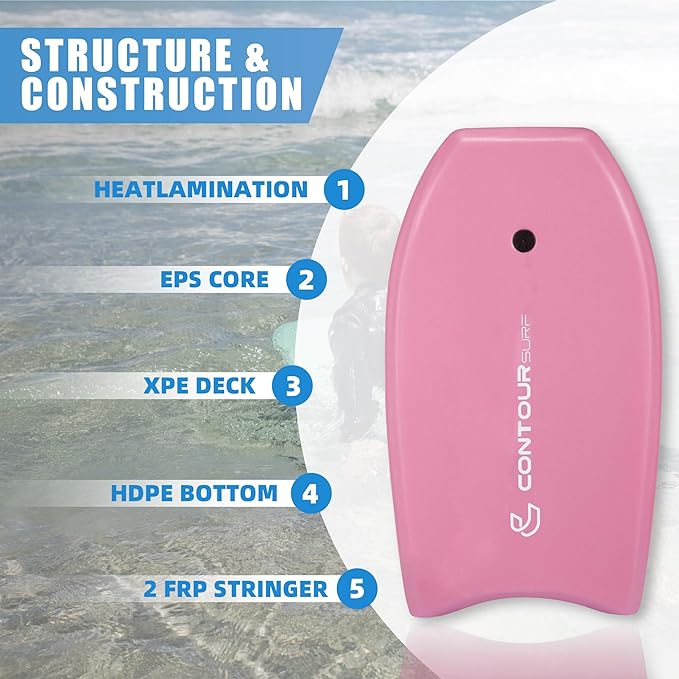 - Durable Heat-Laminated Board: Our heat lamination process cushions and seals the boardโs top and bottom, making it sturdier than regular glued bodyboards. Prevents bubbles and it does not easily deform and fade. The IXPE deck is designed for speed and comfort while resisting impact