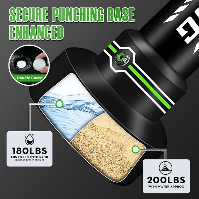 - Material of Heavy Boxing Bag: This freestanding punching bag for adults is made of high quality thickened PVC, durable and elastic, which will quickly bounce back after being hit/kicked, bring you excellent boxing experience.