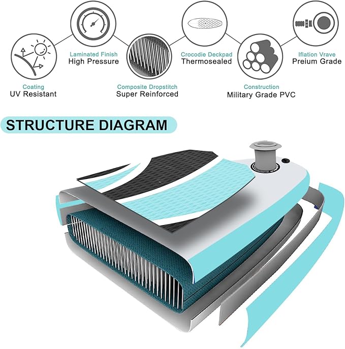 - πUltra-Stable & Compact Inflatable SUP Design: Experience unmatched balance on the 10'x30"x6'' inflatable stand up paddle board, engineered with a wide 30'' deck and 6'' thickness for superior stability in lakes, rivers, and small waves. Crafted from military-grade PVC, this lightweight SUP (only 17.5 lbs) combines durability and portability, making it ideal for beginners and pros alike. Perfect for yoga, fishing, or cruising β the streamlined design reduces drag for effortless gliding.