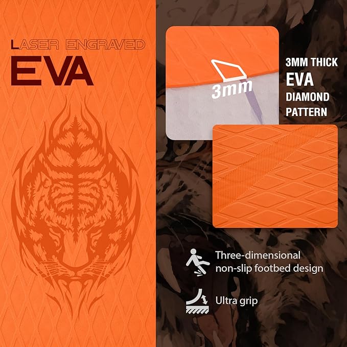 - 【Laser engraved EVA】 Surface laser engraved 3mm thick EVA diamond pattern, high coefficient of friction (≥0.6), wet still maintain a strong grip, with three-dimensional non-slip foot pad design, to avoid slipping and falling, the safety coefficient of pull full.