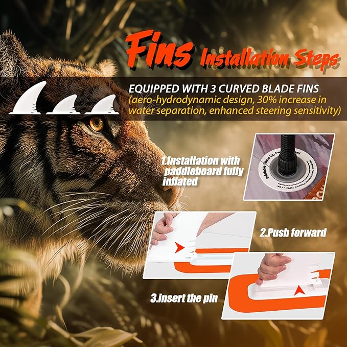 - 【Fins Fluid Reversing Flow Design】 Machete pin fins are designed with aero-hydrodynamic design, which improves the water splitting performance by 30%, reduces lateral resistance, enhances straight line stability and steering sensitivity.